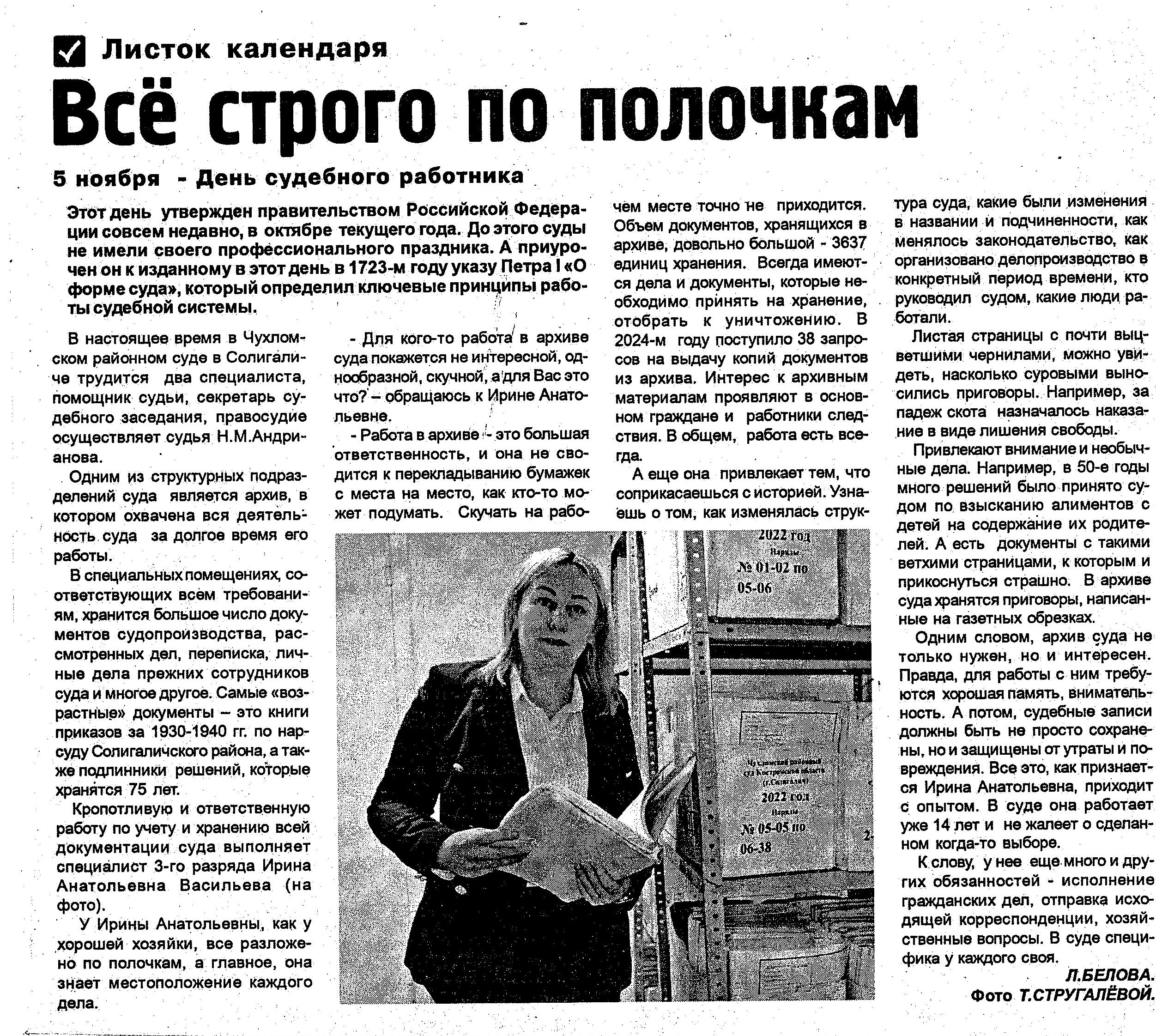 | Статья в районной газете "Солигаличские вести" - "Всё строго по полочкам" | версия для печати |