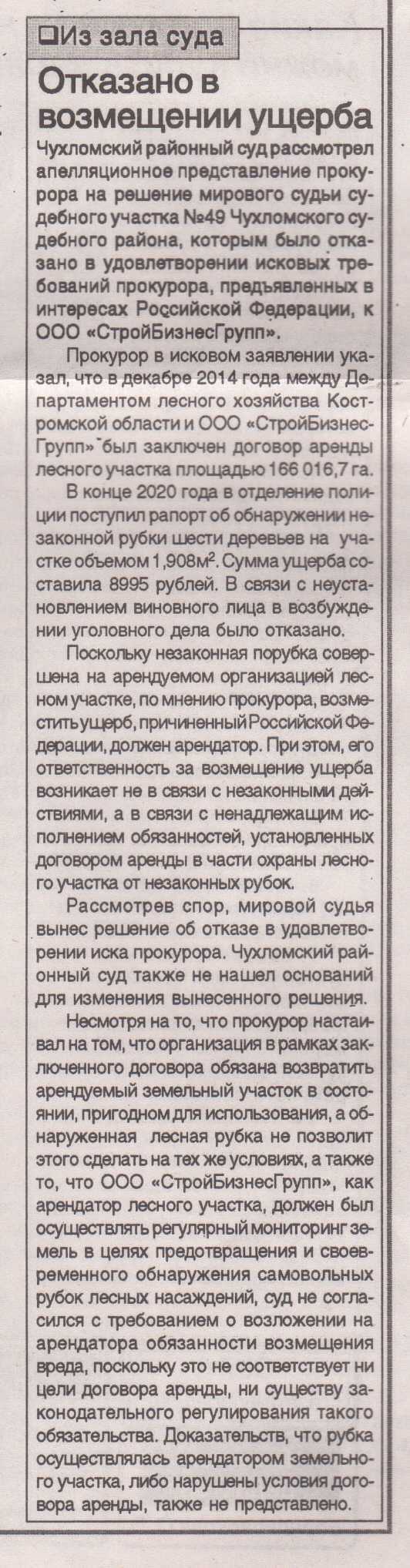 | Статья в районной газете "Вперед" - "Отказано в возмещении ущерба" | версия для печати |