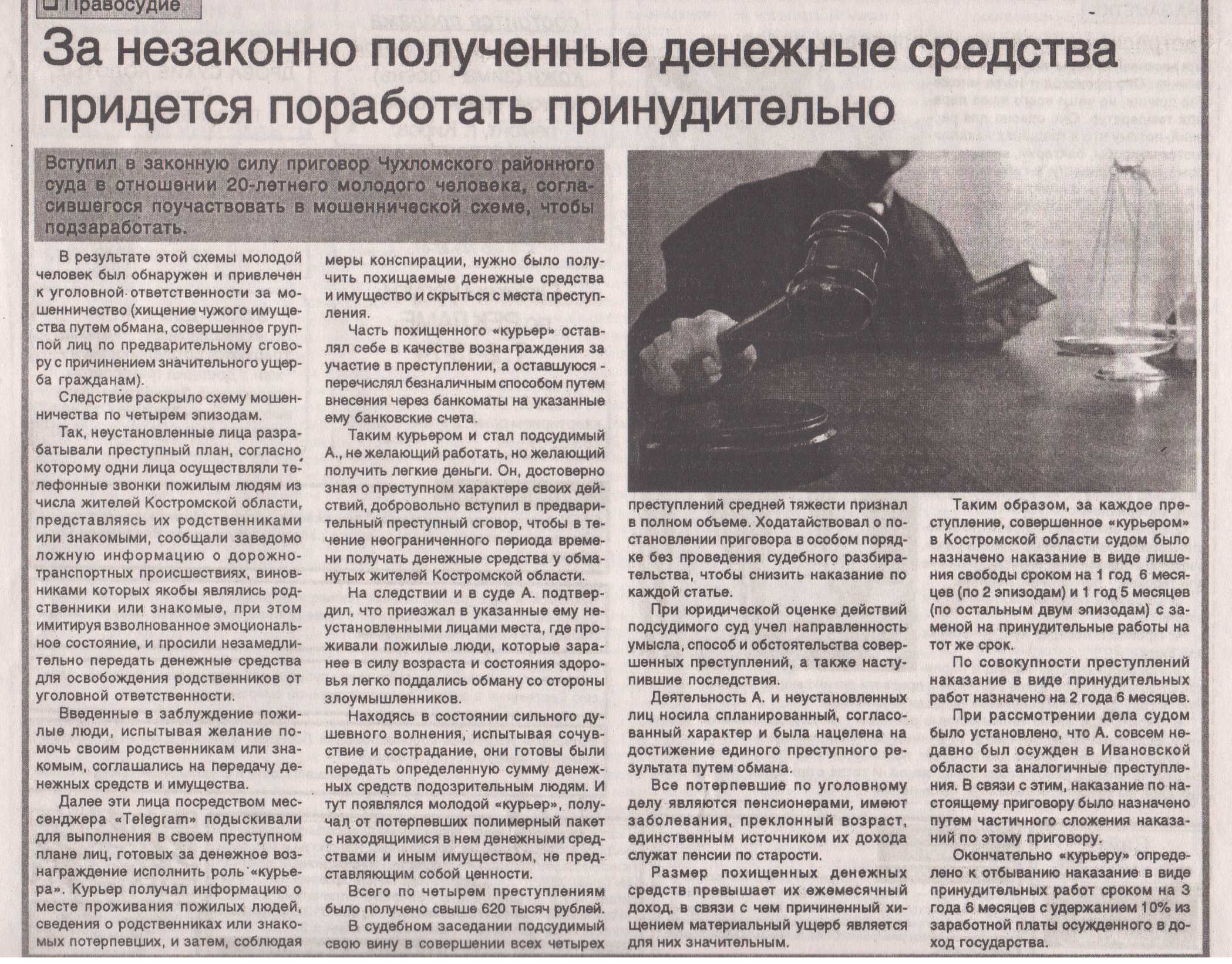 | Статья в районной газете "Вперед" - "За незаконно полученные денежные средства придется поработать принудительно" | версия для печати |