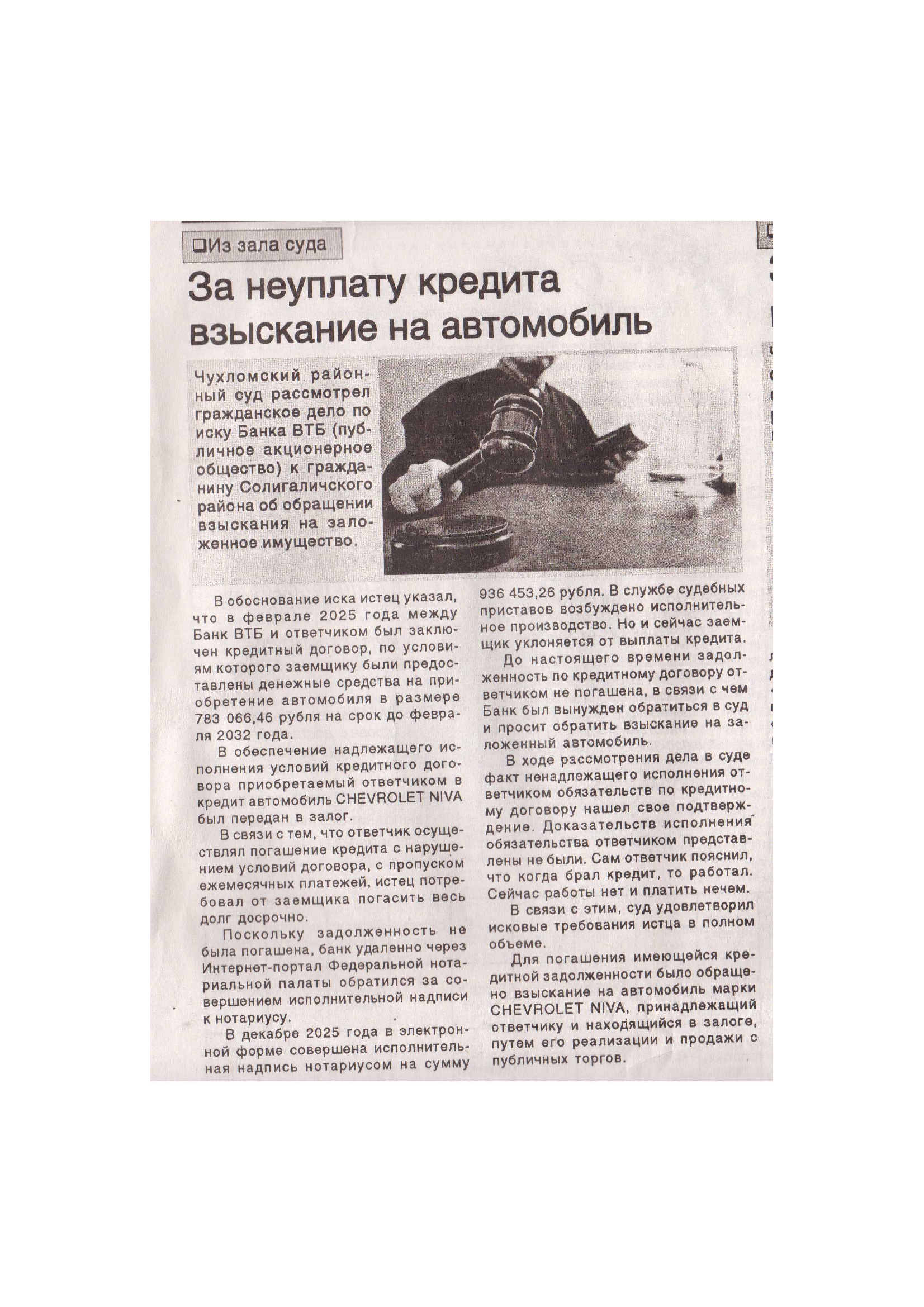 | Статья в районной газете "ВПЕРЁД" - "За неуплату кредита взыскание на автомобиль" | версия для печати |
