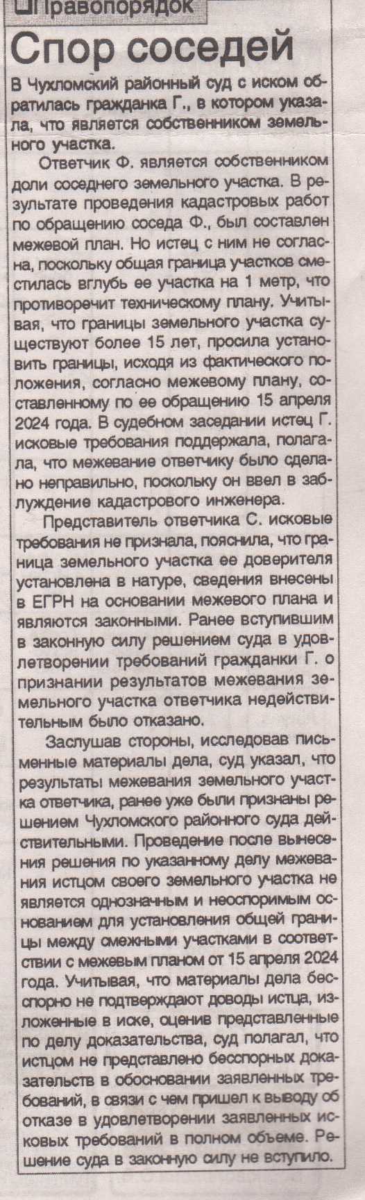 | Статья в районной газете "Вперед" - "Спор соседей" | версия для печати |