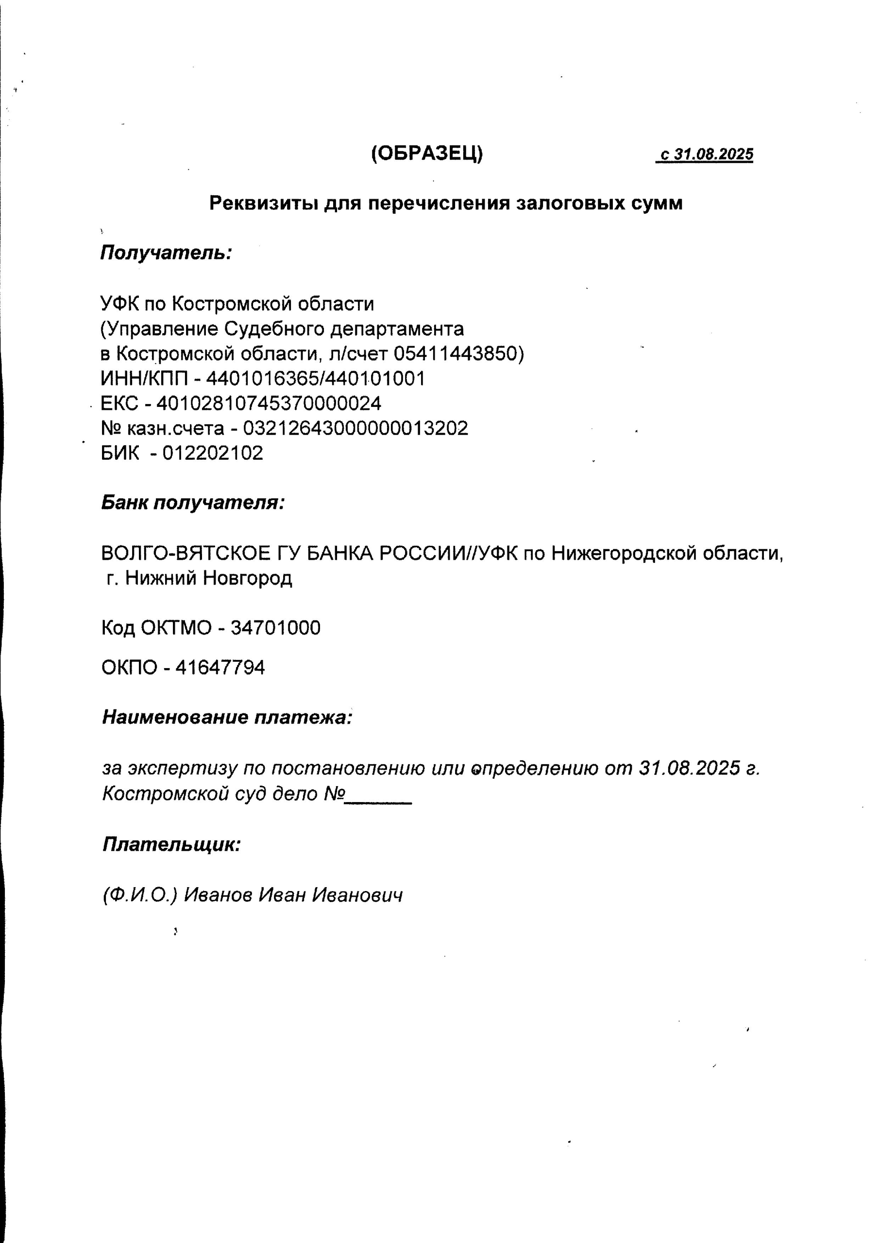 С 31 августа 2025 г. будут изменены реквизиты для