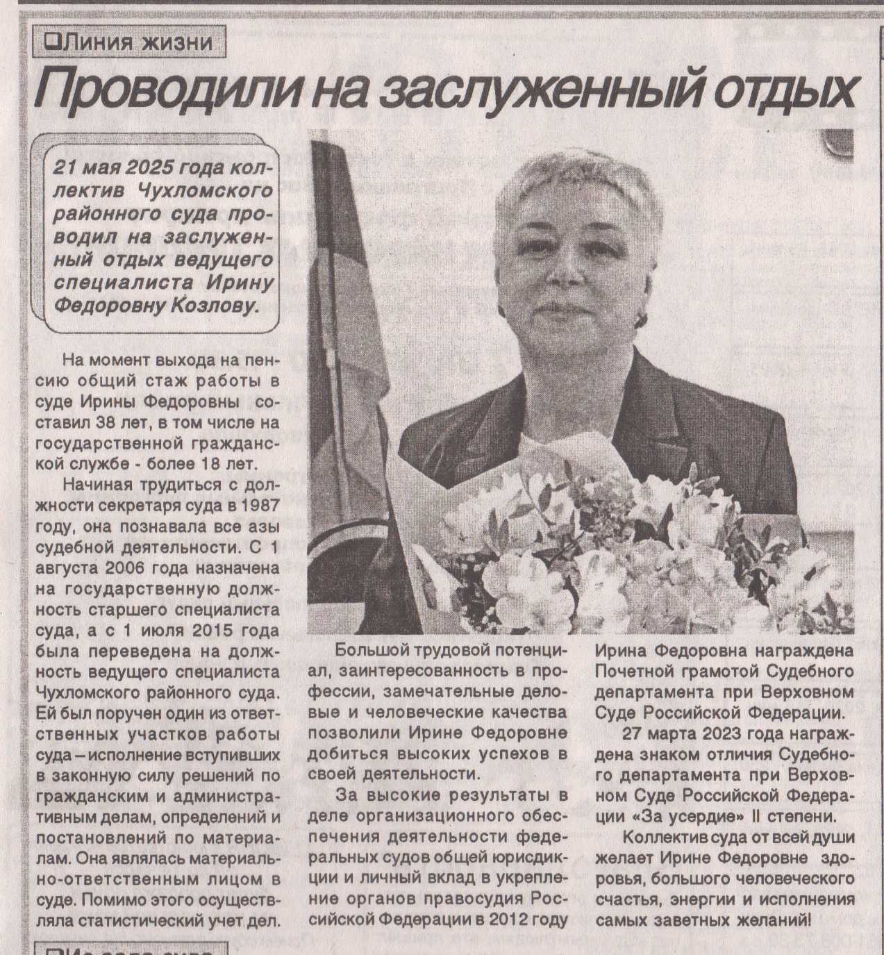 ![]() Публикация в Чухломской районной газете ВПЕРЁД №65 от 05.06.2025 года |