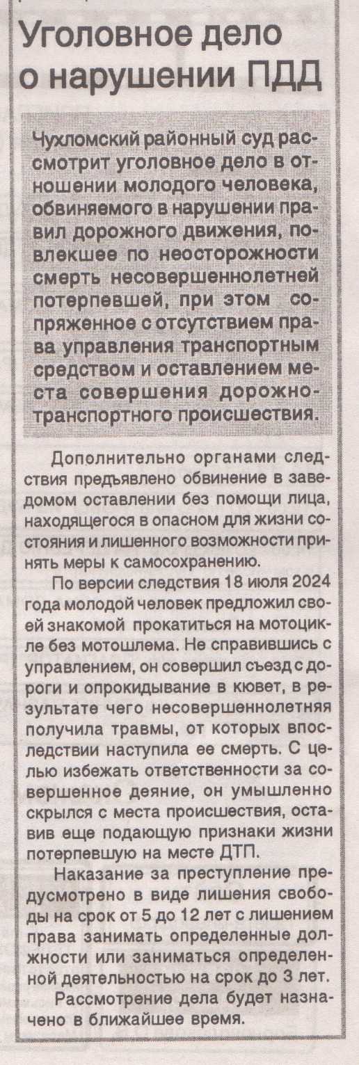 ![]() Публикация в Чухломской районной газете "ВПЕРЁД" № 80 от 10 июля 2025 года. |
