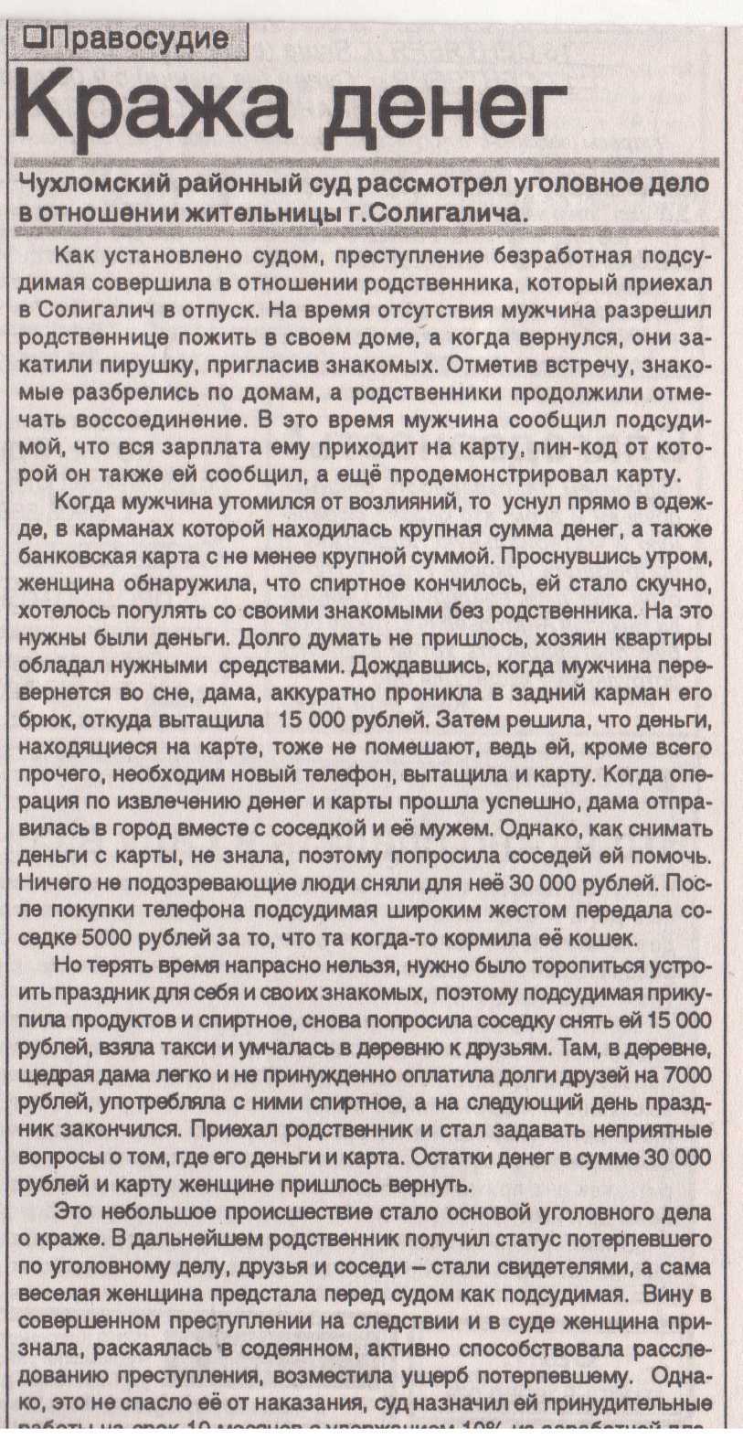 | Статья в районной газете "Вперед" - "Кража денег" | версия для печати |